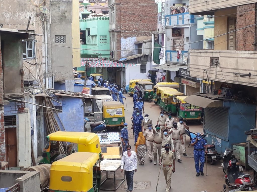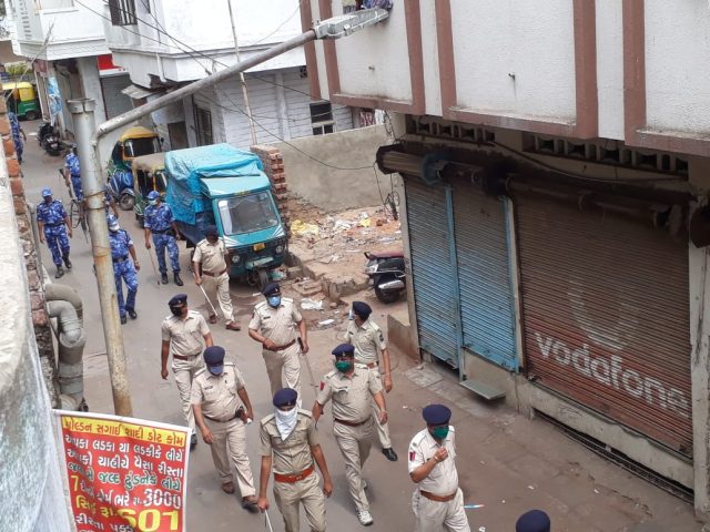 Face Of Nation : અમદાવાદના અનેક વિસ્તારોમાં લોકડાઉનના પગલે RAF(રેપિડ એક્શન ફોર્સ)ની ટુકડી ઉતારવામાં આવી છે. શહેરના સંવેદનશીલ વિસ્તારોમાં આ ટુકડીએ સ્થાનિક પોલીસ સાથે મળીને પેટ્રોલિંગ હાથ ધર્યું હતું અને લોકોને ઘર બહાર ન નીકળવા અપીલ કરી હતી. RAF(રેપિડ એક્શન ફોર્સ)ની ટુકડીએ અમદાવાદના મોટાભાગના તમામ વિસ્તારોમાં પેટ્રોલિંગ કર્યું હતું. અમદાવાદના દરિયાપુર, શાહપુર, કાલુપુર સહિતના વિસ્તારો તેમજ શહેરના પૂર્વ અને પશ્ચિમ વિસ્તારોમાં RAF(રેપિડ એક્શન ફોર્સ)ની ટુકડી ફરીને સ્થાનિકોને બહાર ન નીકળી દેશમાં આવેલી કોરોનાની મહામારી સામે લડવા વિનંતી કરી હતી.