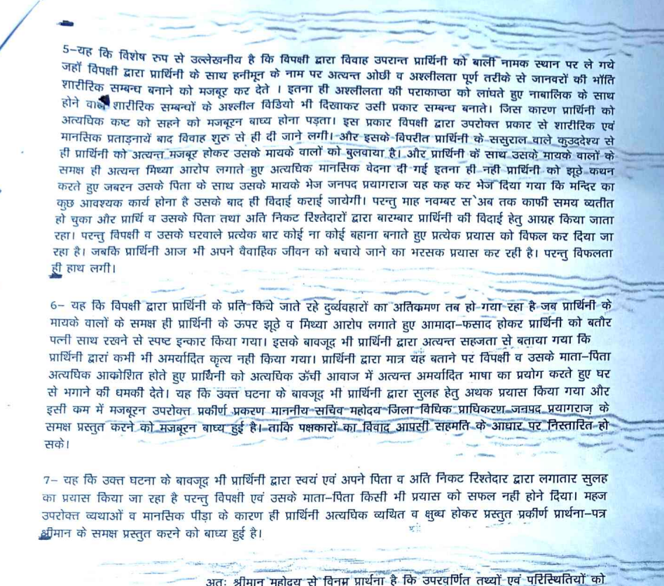 લાલજી સાથે લગ્ન કરનારી અવંતિકા પાંડેએ, એપ્રિલ 24, 2025ના રોજ કરેલ એક અરજીમાં જણાવ્યું હતું કે, તેને સાસરિયાઓ દ્વારા કેટલીક દવાઓનું સેવન કરાવવામાં આવતું હતું. વ્રજેન્દ્રપ્રસાદ તેણીને હનિમૂનના નામે બાલી લઇ ગયા હતા અને જ્યાં અશ્લીલતાની તમામ હદો વટાવી જાનવરની જેમ સેક્સ કરવા દબાણ કરવામાં આવતું હતું. આટલેથી નહિ અટકીને લાલજીએ પોર્ન વિડીયો પણ દેખાડીને વીડિયોમાં દેખાડ્યા પ્રમાણે સેક્સ કરવા દબાણ કરવામાં આવતું હતું. જેને લઈને યુવતીને ખુબ જ યાતના ભોગવવી પડી હતી. આ અરજી હાલ સોશિયલ સાઇટ્સ ઉપર વાયરલ થઇ રહી છે. ભગવાનના વંશજોના નામે ભક્તોને ગુમરાહ કરનારા આવા લાલજીઓ એ વાતનો સ્વીકાર કરતા પણ નથી ખચકાતા કે તેઓ હનીમૂન માટે બાલી અને દુબઇ જાય છે. લાલજીએ દાખલ કરેલી પોલીસ ફરિયાદ એ ધર્મકુળના નામે પરિવારમાં શું જ્ઞાન પીરસવામાં આવે છે તેની ચાડી ખાય છે. ધર્મનું ઓઢણું ઓઢીને જે આખા સમાજને સુધારવા નીકળ્યા છે તેઓના ખુદના ઘરમાં શાંતિ નથી કે તેઓના ખુદના ઘરમાં સ્ત્રી સુરક્ષિત નથી આ વાત ખુબ જ શરમજનક છે છતાં પણ તેમના ભક્તો આ સમગ્ર ઘટનાને લાલજી મહારાજની લીલા માને છે. ખેર ! આવા ભક્તો જ્યાં સુધી હશે ત્યાં સુધી આવા લાલજીઓ અને ધર્મકુળ ધર્મ સત્તાના સ્થાને જાહોજલાલી ભોગવશે તેમ કહેવામાં કોઈ બે મત નથી. શરમજનક વાત છે કે, આવા લાલજીઓને હનીમૂન કરવાના અભરખા હોય છે, જો આટલી જ હનીમૂન કરવાની ઈચ્છાઓ ઉદભવતી હોય તો તેઓએ ભગવાનના નામે નાટકો કરવાના કોઈ અધિકારો જ નથી. ધર્મ અને વૈરાગ્યનું જ્ઞાન આપતા લાલજીએ હનીમૂન દરમ્યાન તેની વિકૃતતાની હદ વટાવી દીધી હોવાના આક્ષેપો યુવતીએ કર્યા છે.