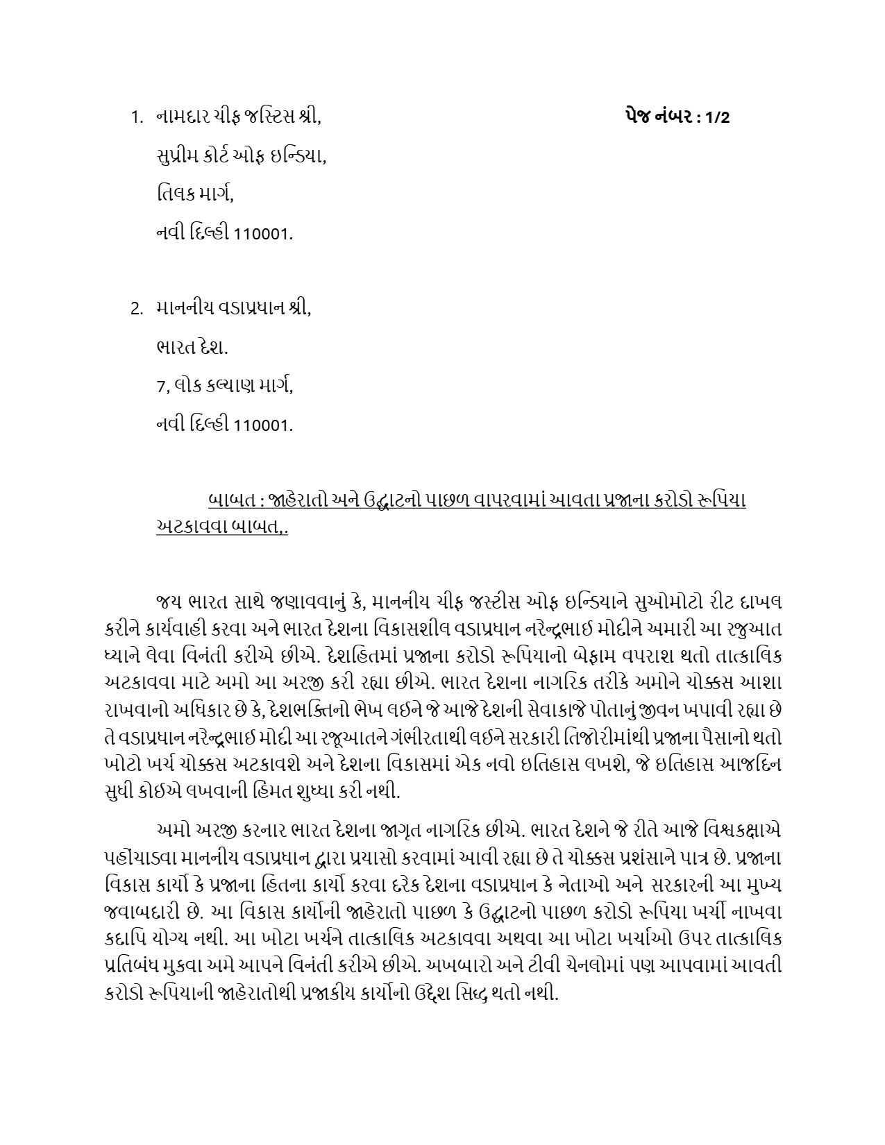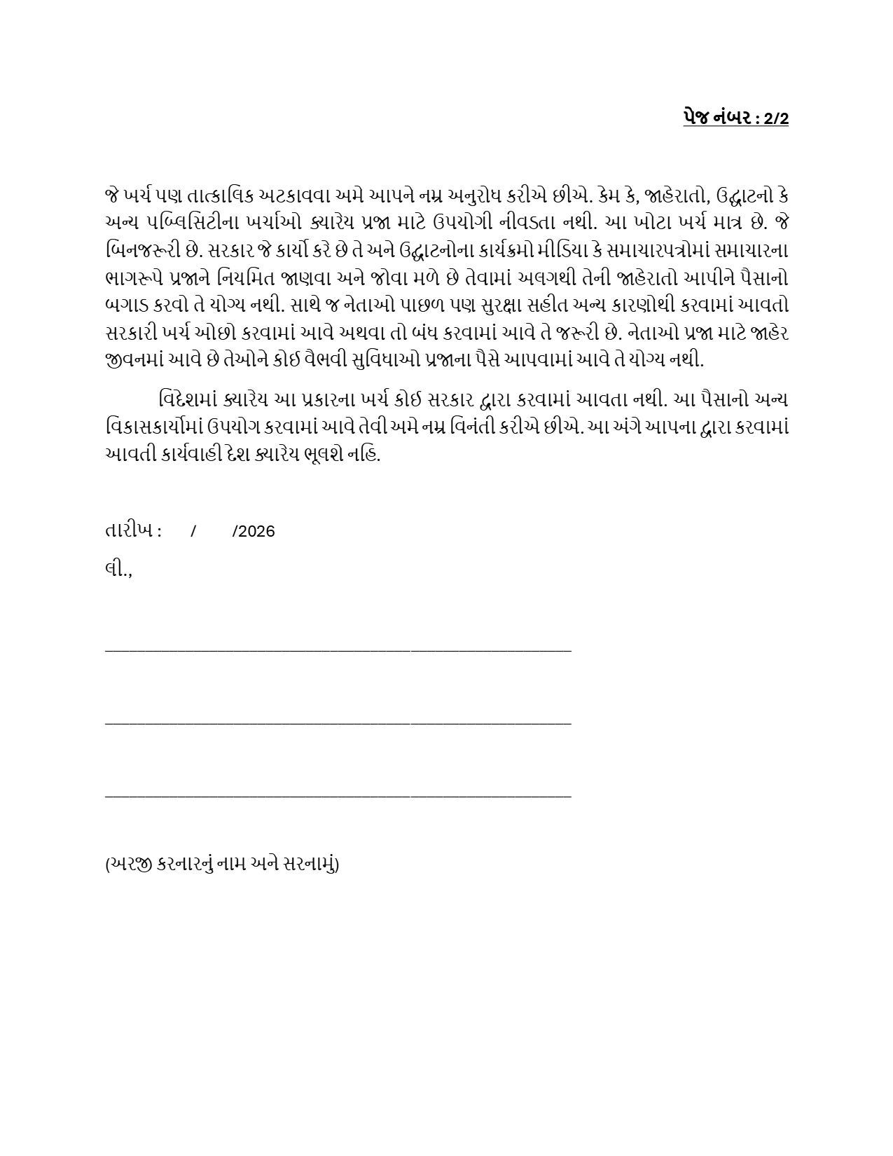 Face Of Nation 12-01-2026 : દેશહિતની વાત કરવી અને દેશહિતના કાર્યો કરવાની જવાબદારી માત્ર નેતાઓએ નથી લીધી. આ માટેની મુખ્ય જવાબદારી પહેલા નાગરિકોની છે. ભ્રષ્ટાચાર સહીત દેશમાં પ્રજાના હિત વિરુદ્ધ થતી કામગીરી સામે પ્રજાએ જ અવાજ ઉઠાવવો પડશે. જેના માટે અમે ભારતમાં પ્રથમવાર દેશહિતમાં પ્રજા માટે એક એવો પ્રયાસ કરવા જઈ રહ્યા છીએ જે આજદિન સુધી કોઈ મીડિયાએ કરવાની હિંમત કરી નથી. ભારત સિવાય અન્ય દેશો એટલા આગળ છે જેનું મુખ્યકારણ એ છે કે, ભારત સિવાયના દેશોમાં ક્યારેય પ્રજાનો પૈસો વેડફવામાં કે ખોટા ખર્ચ માટે થતો નથી. રાજકીય પ્રચાર પ્રસાર કે મીડિયાને જાહેરાતો આપવા માટે ક્યારેય પ્રજાના નાણાં વેડફવામાં આવતા નથી. સરકાર અને તંત્રને પ્રજાના પૈસાનો બેફામ વ્યય અટકાવવા માટે પ્રજાએ જ પહેલ કરવી પડશે. જો નેતાઓની આંખો ખુલશે અને પ્રજા પ્રચંડ બહુમત સાથે આ કાર્ય કરશે તો ભારતમાં પ્રજાની જીત અને એક નવો ઇતિહાસ લખાશે તેમ કહેવામાં કોઈ બે મત નથી. અમે આ પ્રયાસના ભાગરૂપે અહીં એક અરજી રજૂ કરી રહ્યા છીએ. ભારતદેશની જનતા તરીકે તમે તેને પોતાની નૈતિક જવાબદારી સમજીને એક કાગળ ઉપર પ્રિન્ટ કરાવી નીચે જણાવેલ સરનામે પોસ્ટ મારફતે મોકલી આપો. આપનો આ એક પ્રયાસ કે કાગળ ભારત દેશને એક ઐતિહાસિક બદલાવ તરફ દોરી જશે જેનાથી પ્રજાને સૌથી મોટો ફાયદો થશે. મીડિયા તરીકે અમે અમારી જવાબદારી નિભાવવા આગળ આવ્યા છીએ હવે પ્રજા તરીકે તમે તમારી નૈતિક જવાબદારી નિભાવવા આગળ આવો. અમે વિનંતી કરીએ છીએ કે, ક્યારેય કોઈ વ્યક્તિ એમ ન સમજે કે અમારી એક અરજીથી કે આ બધાથી શું ફર્ક પડવાનો છે. જો તમે દેશનું ભલું ઇચ્છતા હોવ તો દેશ હિતમાં આ અરજી કરજો અને બીજી વધારે પ્રિન્ટ કાઢીને અન્યને પણ આ અરજી કરવા પ્રોત્સાહિત કરજો. અરજી નીચે પ્રમાણે છે. જેની ઉપર ક્લિક કરી ડાઉનલોડ કરી પ્રિન્ટ કાઢીને અરજીમાં જણાવેલ સરનામે પોસ્ટ કરવી.