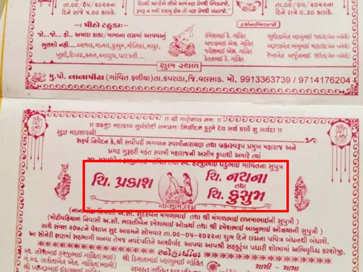 Face Of Nation 02-05-2022 : કપરાડા તાલુકાના નાનાપોંઢા ગામે 9મી મેના રોજ એક અનોખા લગ્ન થવા જઇ રહ્યા છે એની ચારેતરફ ચર્ચા ચાલી રહી છે. સોશિયલ મીડિયામાં વાયરલ થયેલી લગ્નપત્રિકા મુજબ કપરાડાના નાનાપોંઢામાં વરરાજા એક જ મંડપમાં, એક જ દિવસે અને સમયે એકી સાથે બે કન્યાઓ સાથે લગ્નગ્રંથિથી જોડાશે. એક જ લગ્નમંડપમાં વરરાજા બે યુવતી સાથે લગ્ન કરવાના હોવાથી લગ્ન પર સૌની મીટ મંડાઇ છે.