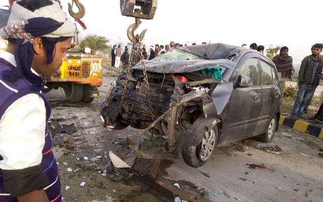 એક્સિડન્ટમાં કારનો આગળનો હિસ્સો કચડાઈ ગયો
